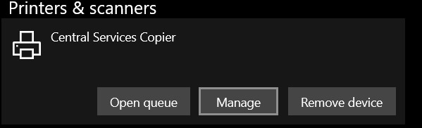 - Select [Printer Name] > Manage