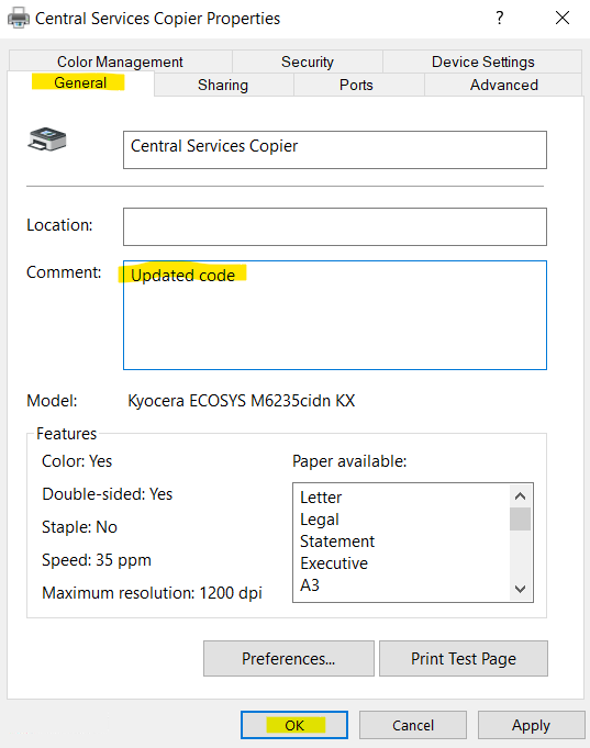 - The reason for this step is that sometimes the Printer Properties will not be notified that Admin changes have been made, and Properties will close out without saving to reduce power/memory usage.